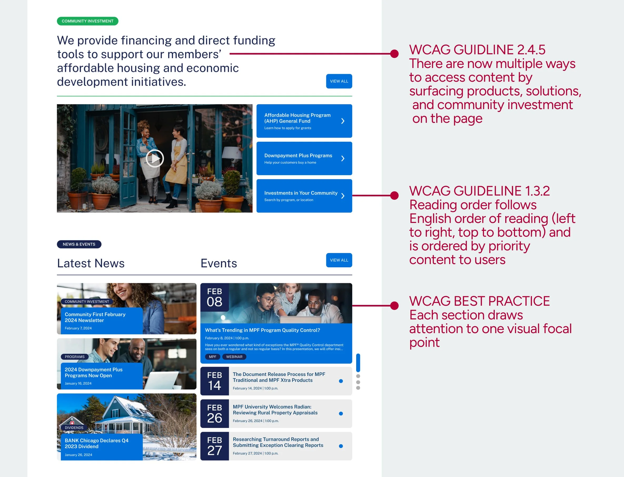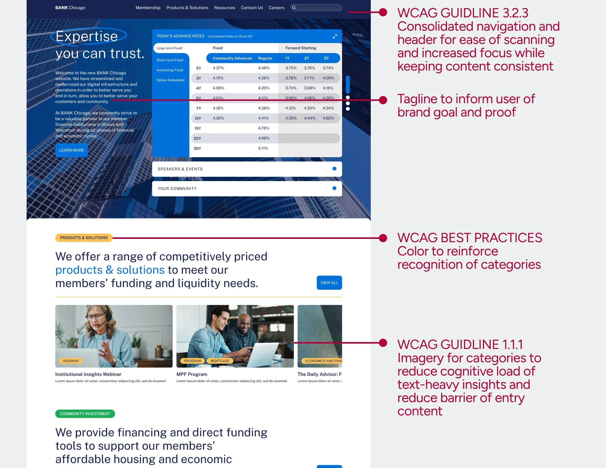 On a small team of 3 designers at Avanade, we evaluated the accessibility of BANK Chicago’s current site and proposed a new design based off of our research.